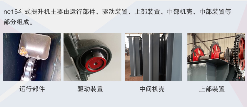 ne15斗式提升机主要由运行部件、驱动装置、上部装置、中部机壳、中部装置等部分组成。