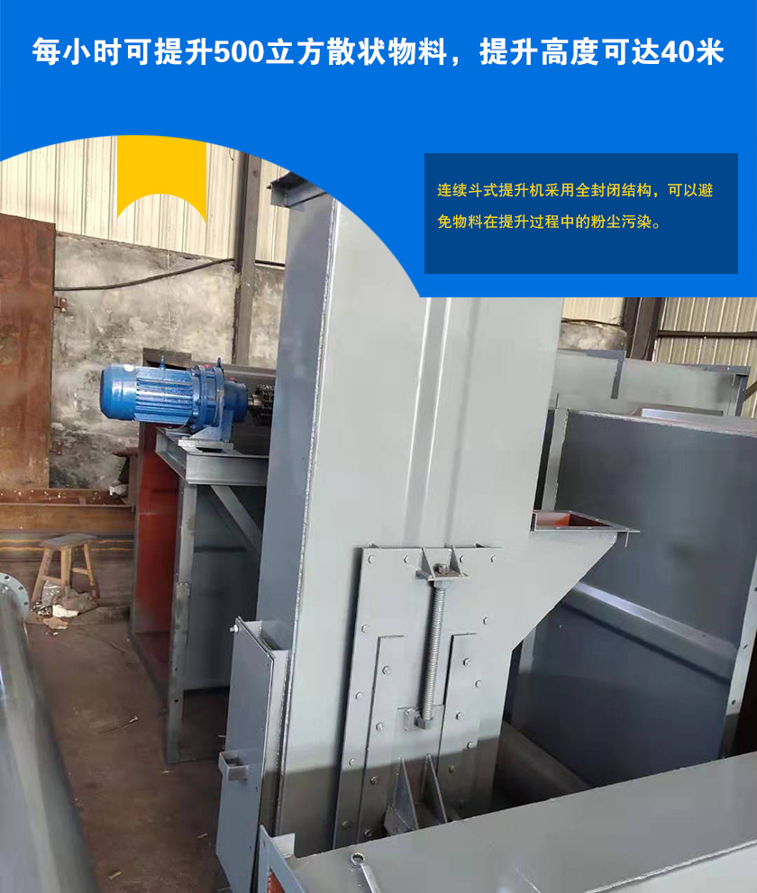 3、连续斗式提升机采用全封闭结构,可以避免物料在提升过程中的粉尘污染。