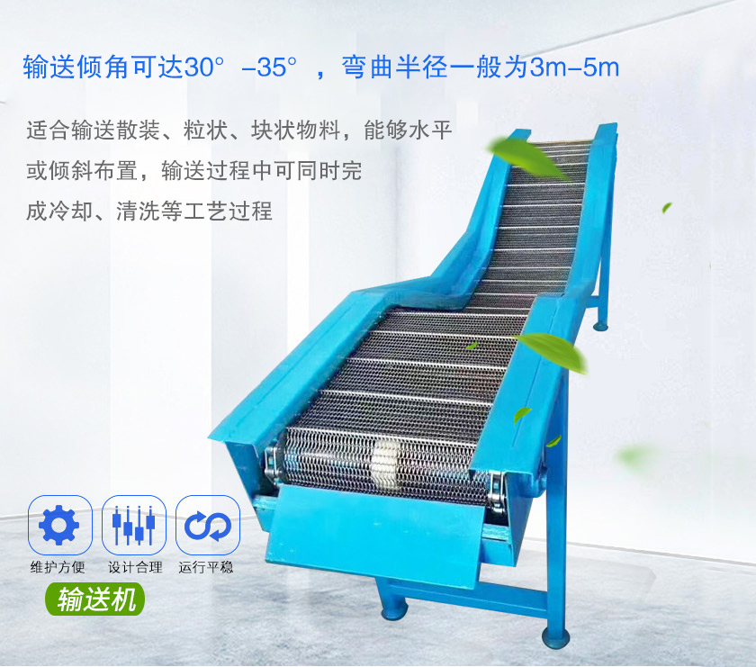 链板输送机采用链板输送带180°链板输送机用于衔接,与其他输送设备配合使用能充分节省空间并能起到良好的输送效果。转弯角度可分:60°、90°、180°??墒渌偷奈锪现掷喾倍啵瓤墒渌透髦稚⒘?,折弯链板输送机,也可输送各种纸箱、包装袋等单件重量不大的件货,广泛应用于食品、医药、化工、电力、冶金等行业,适宜输送600-700℃的高温物料。