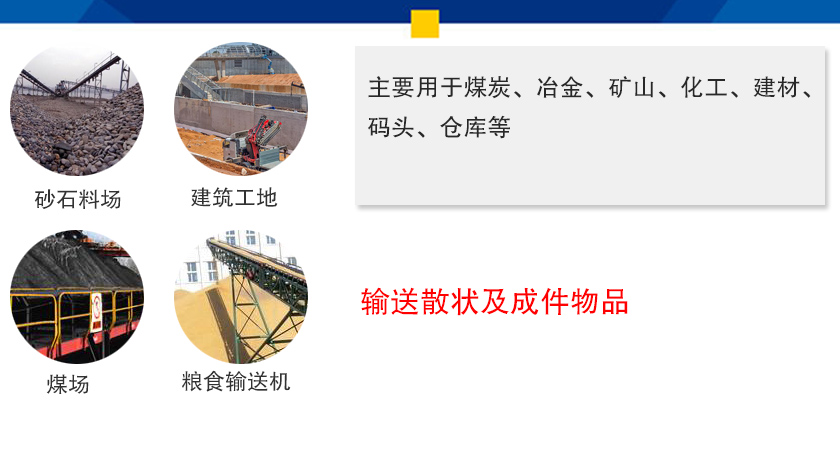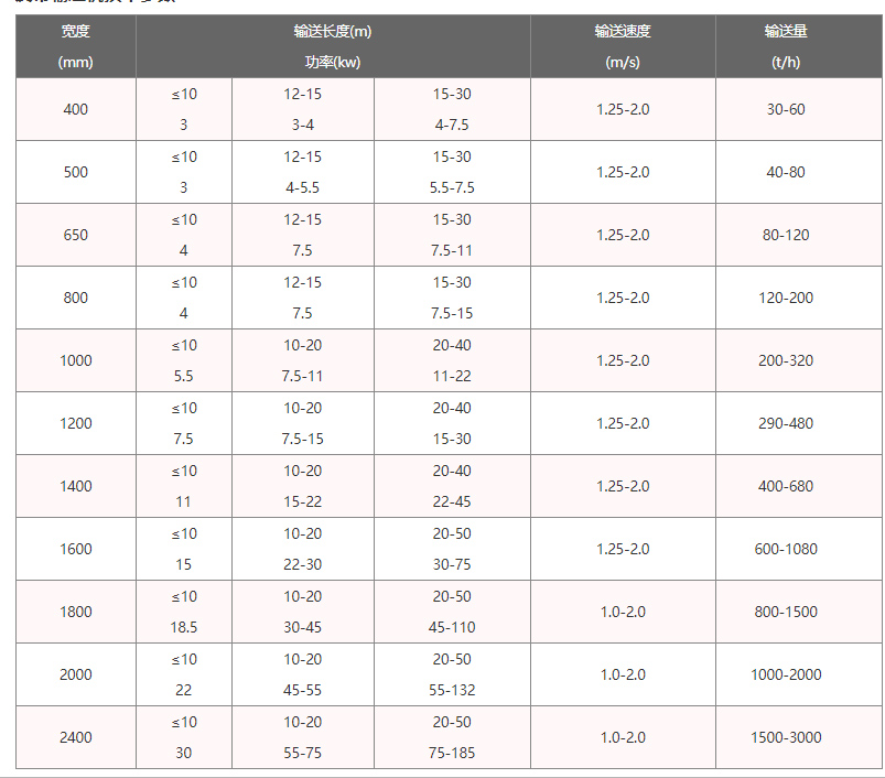 4、根据输送量的大小采用不同的带宽,还可在机尾加装导料槽和挡板以防止物料滑落。