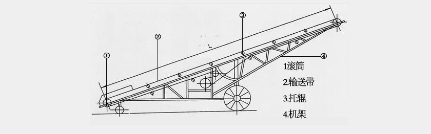 移动式皮带输送机主要是以输送带作为牵引和承载构件,通过承载物料的输送带的运动进行物料输送的连续输送设备,输送带绕经传动滚筒和尾部滚筒形成载极环形带,上下输送带由托辊支承以限制输送带的挠曲垂度,拉紧装置为输送带正常运行提供所需的张力。工作时驱动装置驱动传动滚筒,通过传动滚筒和输送带之间的摩擦力驱动输送带运行,物料和输送带一起运动,移动皮带输送机一般是在端部卸载,应当采用专门的卸载装置时,也可在中间卸载。