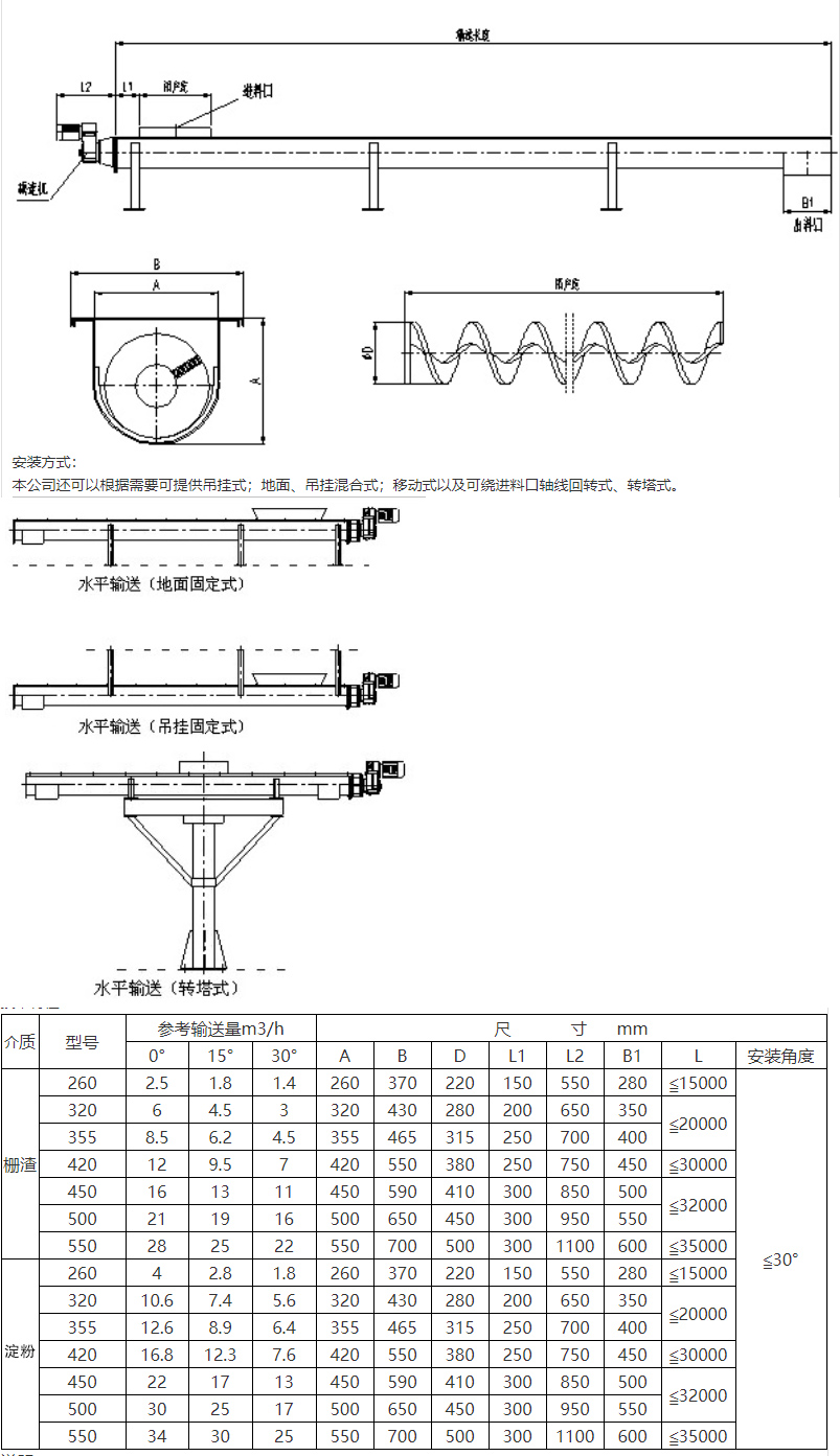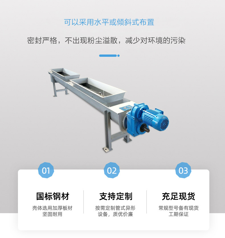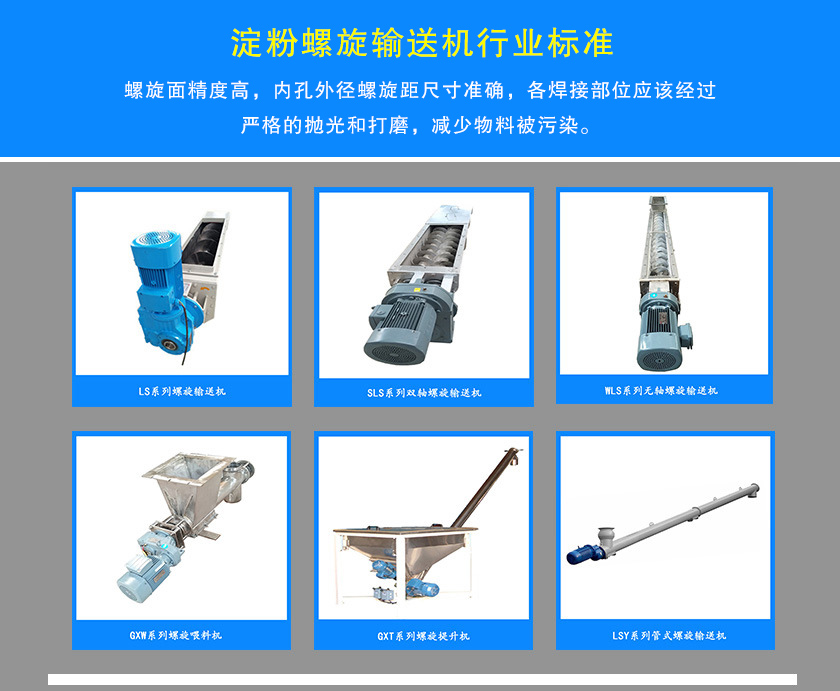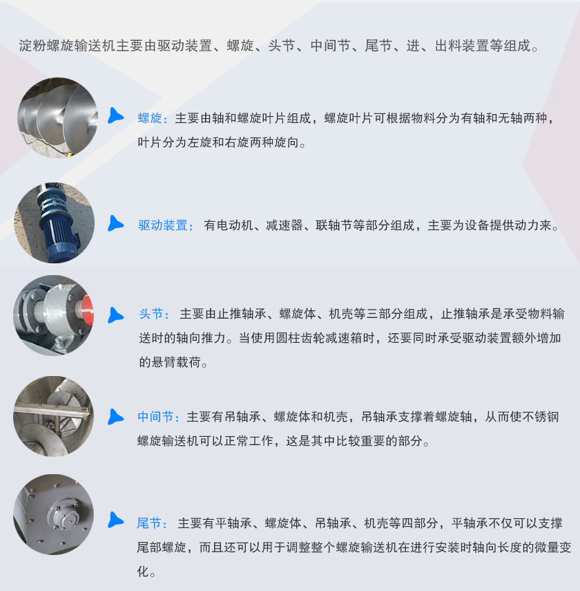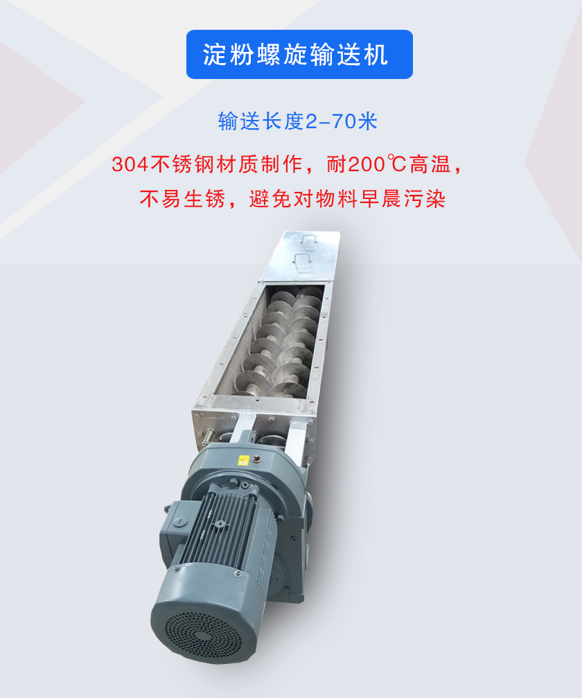 淀粉螺旋输送机主要由驱动装置、螺旋、头节、中间节、尾节、进、出料装置等组成。