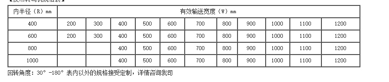 1、转弯皮带机结构形式有30度转弯皮带机、45度转弯皮带机、90度转弯皮带机、180度转弯皮带机, 能满足各种转弯输送的工艺要求。