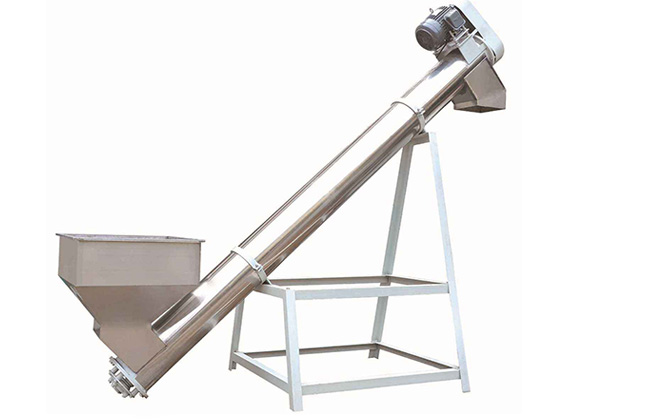 1-90°的大角度螺旋输送机都有,角度是90°,但角度越大,速度就要越快。速度快了,功率相应也要加大的选用的型号不同倾角不同。还可以前面加段水平螺旋,我们做垂直90度的,但同一个螺旋输送机,角度越大,输送能力相应越下降。这个不止要考虑转速的提高,还要考虑物料受离心力的作用附着在外壳上,转速是有上限的,就是螺旋的升力有限,高了就不行了。另外,螺旋给料机可以做多个进料口,也可以做多个出料口。但是,出料口必须要做气动闸板阀。