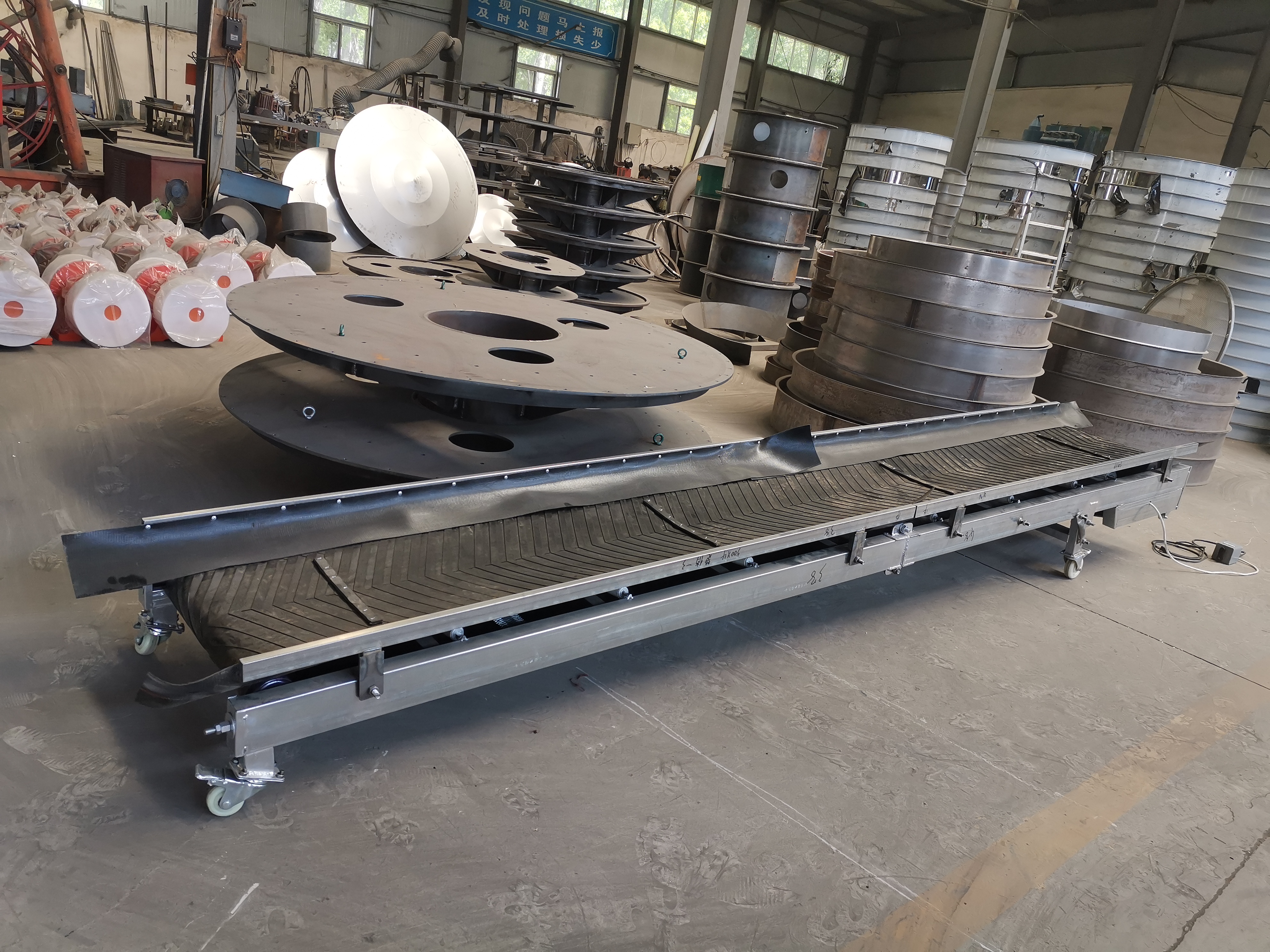 2、水平带式输送机底部装有万向轮,可随处移动。