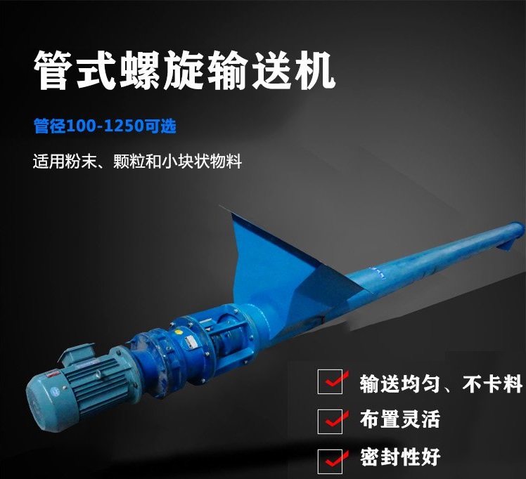 管式螺旋输送机是较为常见的一种输送机,整个运输过程是在封闭的圆管内进行,输送均匀、不易卡料,且不会产生粉尘。