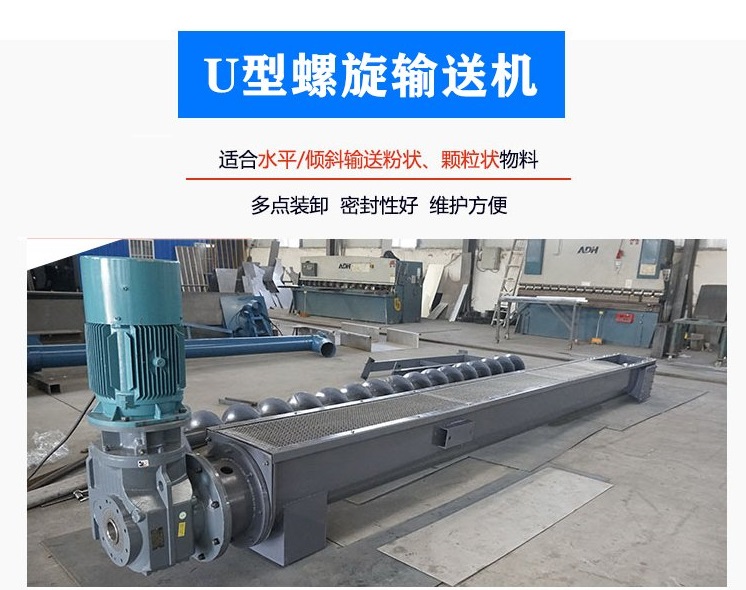 U型螺旋输送机是在料槽横截面为“U”型的料槽中水平/小倾角输送产品。