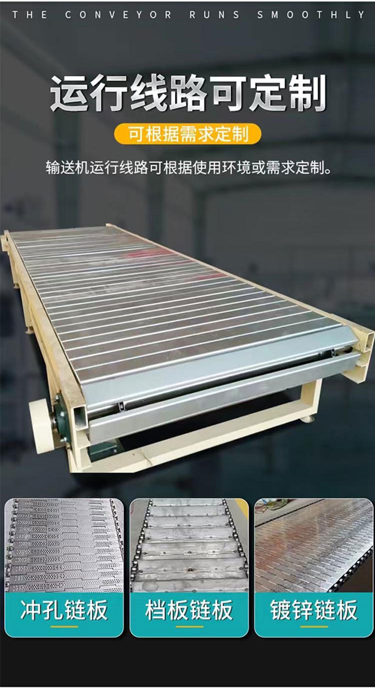 一旦您需要运输的产品被安全地装载到链板输送机上,系统就会通过操作ON/OFF按钮或开关来供电,这会导致电机系统发生顺时针或逆时针旋转运??动,具体取决于所需的运动方向,使得网状齿轮和链条的运动与电机的运动方向相同,结果,链板输送机将负载通过传动系统移动到最后一个齿轮,在那里完成卸载,对于单向操作,输送系统也可以定制以提供向任一方向的运动,这是通过在输送系统的两端安装两个或多个电机来实现的。