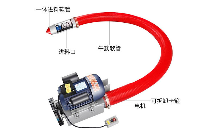 手持式100毫米柔性螺旋输送机:单手就能灵动的机器,重量轻、体积小、工作时的推力小,可以手动操作,降低工作强度。