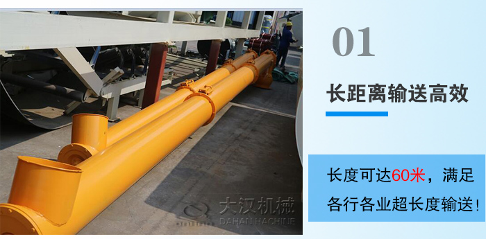 无轴螺旋输送机单机输送长度可达60米,它适合水平输送,倾斜角度不要超过20°(根据实际的使用情况而言)同时可以根据用户需要进行对螺旋输送机的输送长度进行调节,其采用多级串联式安装可实现超长距离输送物料。