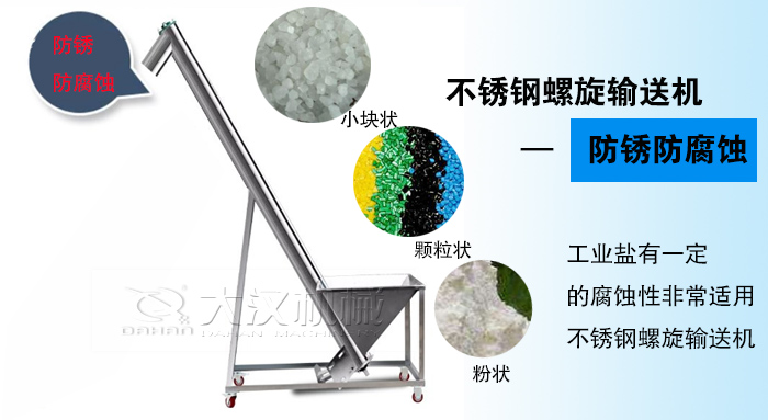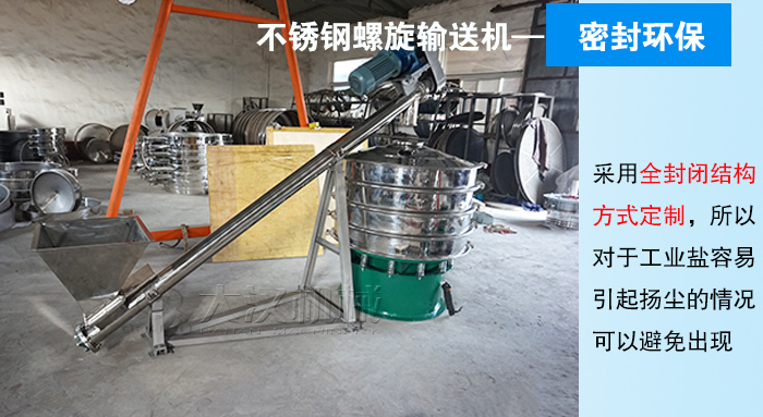 工业盐有一定的腐蚀性,而不锈钢螺旋输送机就适用于输送有腐蚀性的粉状、颗粒状、小块状等物料,在防锈的同时也能达到防腐蚀的效果。