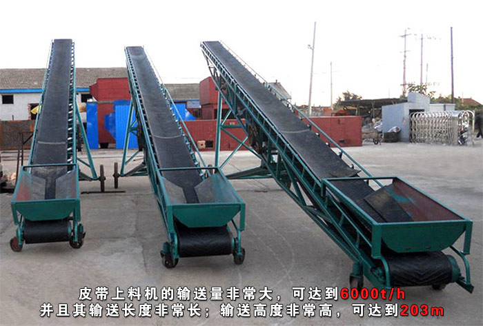 1)输送量大——皮带上料机的输送量非常大,可达到6000t/h,并且其输送长度非常长;输送高度非常高,可达到203m。
