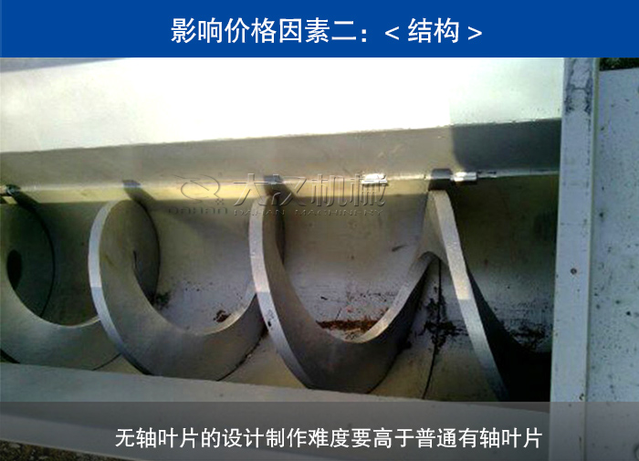 餐饮垃圾无轴螺旋输送机在结构特点上其是有所差距的。其中明显的就是中心轴分为有轴和无轴,虽然他们就只有一根螺旋轴的差距,但是价格还是有几百甚至上千元的差异,具体差异要以型号差异为主。无轴叶片的设计制作难度要高于普通有轴叶片,所以在价格餐无轴螺旋输送机要出不少。