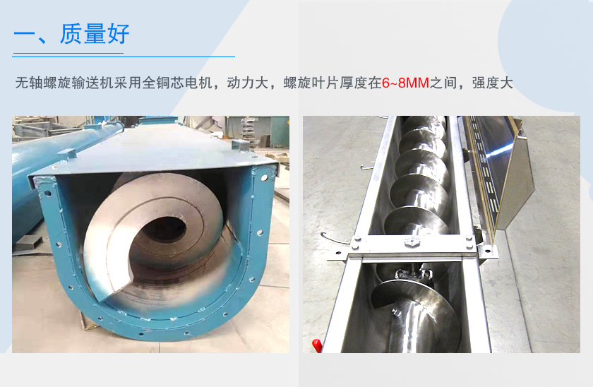 无轴螺旋输送机采用无轴螺旋叶片,是输送粘性高、易于缠绕的物料时输送设备,无轴螺旋输送机厂家有很多,哪家生产的无轴螺旋输送机质量好呢?