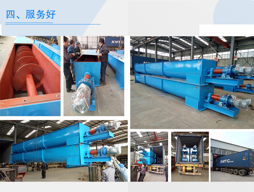 从无轴螺旋输送机选型、试机、发货、售后等环节,我们有专业的人员负责一对一指导,设备支持带料试机,常规型号当天可发货,减少用户时间成本,组装后发货用户在收到货后即可投入生产,在使用过程中如果有任何问题,可以随时联系大汉厂家,必要的话我们会为您派遣专业人员到厂维修,免人工费。