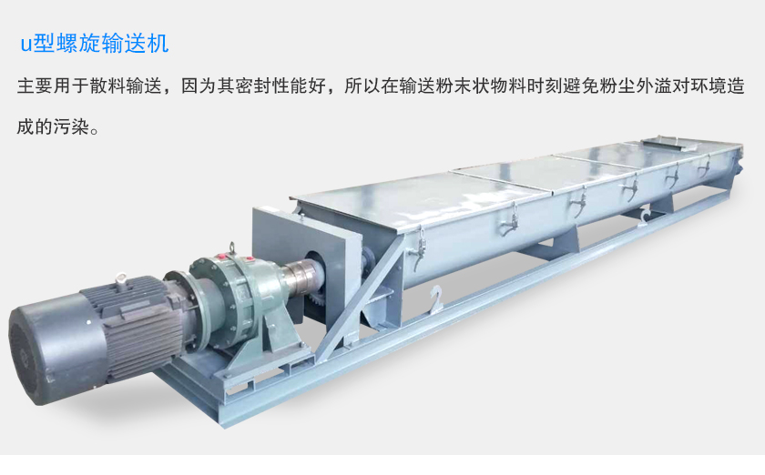 u型螺旋输送机主要用于散料输送,因为其密封性能好,所以在输送粉末状物料时刻避免粉尘外溢对环境造成的污染。
