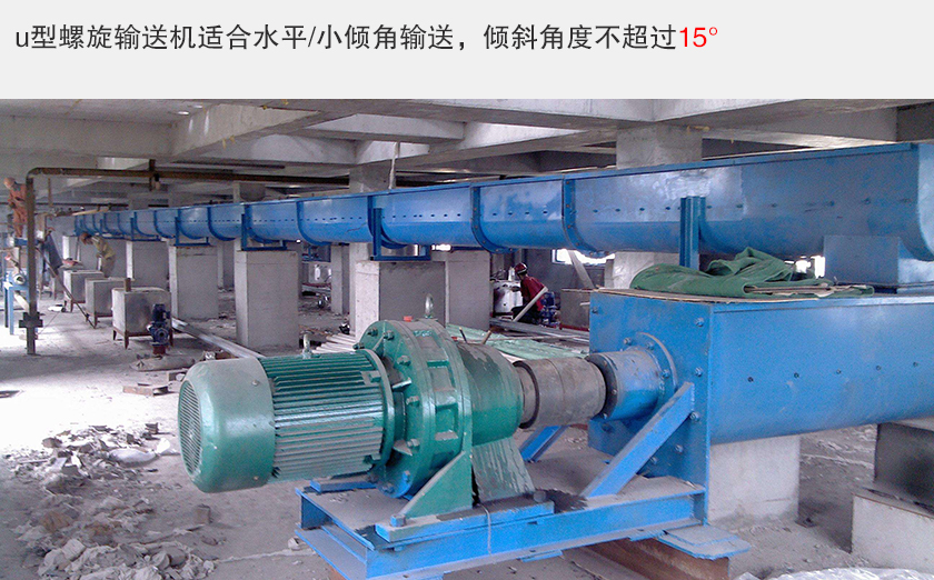 u型螺旋输送机输送倾斜角度不超过15°。