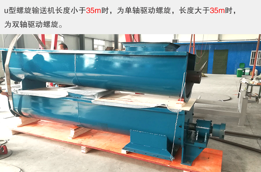 u型螺旋输送机长度小于35m时,为单轴驱动螺旋,长度大于35m时,为双轴驱动螺旋。u型螺旋输送机适合小范围输送,不宜长距离输送。